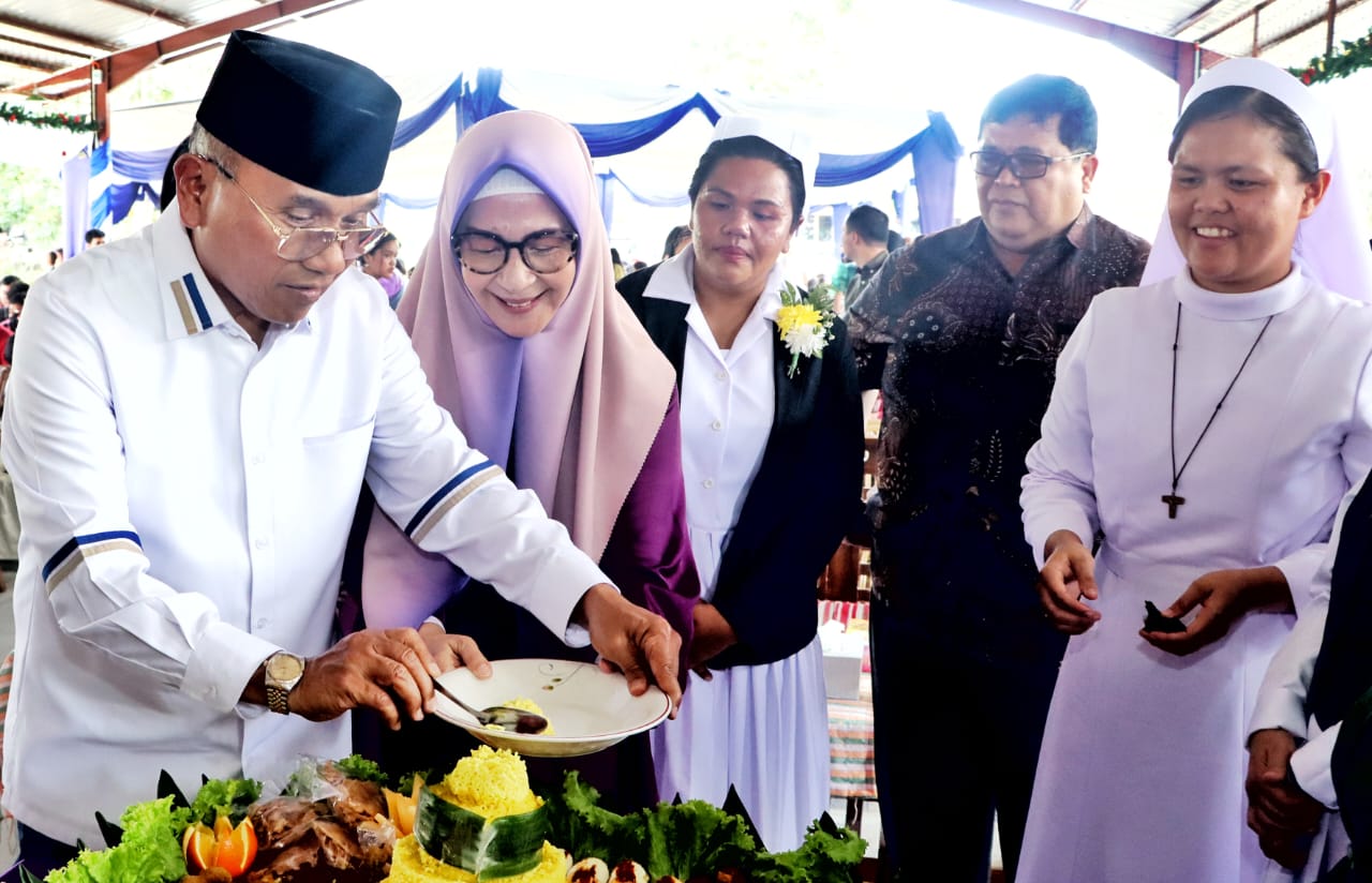 Simalungun, NASIONALIS – Bupati Simalungun, Dr H Anton Ahmad Saragih didampingi oleh Ketua TP.PKK Kabupaten Simalungun, Ny. Darmawati Anton Ahmad Saragih menghadiri perayaan Natal yang dilaksankan oleh Panti Anak Remaja Siantar Simalungun (PARSSI), berlangsung di Panti Asuhan Bumi Keselamatan Margarita (BKM), GKPS Silau Malaha Blok Songo, Kecamatan Siantar, Kabupaten Simalungun, Sumatera Utara, Jum’at (26/12/2025).