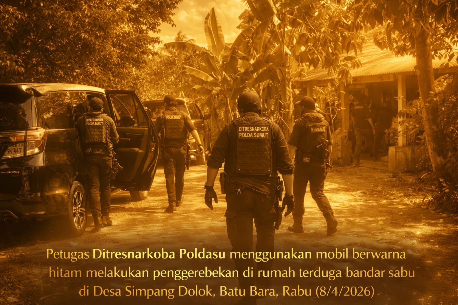Terbaru, Tim Khusus Direktorat Reserse Narkoba Polda Sumatera Utara dilaporkan melakukan penggerebekan di Dusun I, Desa Simpang Dolok, Kecamatan Datuk Lima Puluh, Kabupaten Batu Bara, Rabu (8/4/2026) sekitar pukul 15.00 WIB.